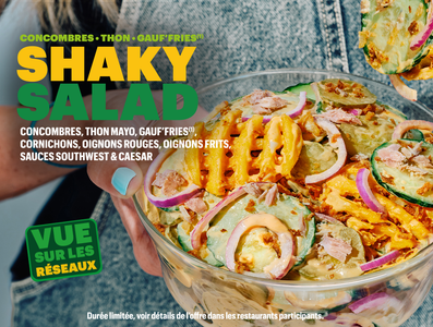 Shaky Salad : la nouvelle salade fraîche et gourmande à découvrir chez Subway. Envie de fraîcheur et de saveurs cet été ? Venez découvrir la Shaky Salad, la nouvelle salade tendance disponible en édition limitée du 25 juin au 26 août 2025 dans votre restaurant Subway. Inspirée des recettes les plus virales du moment, notre Shaky Salad revisite la célèbre "salade de concombres" avec une touche Subway unique : 🥒 Concombres ultra frais 🐟 Thon-mayo 🧇 Gauf’fries 🧅 Oignons rouges & frits 🥒 Cornichons 🔥 Sauces Chipotle Southwest & Caesar Le tout préparé à la minute et secoué pour une explosion de goûts ! 💥 Une expérience fun, gourmande et rafraîchissante… à savourer sur place ou à emporter. 📍 Disponible dès maintenant dans tous les restaurants Subway participants en France. Ne la manquez pas : elle disparaît le 26 août ! ➡️ Passez dès aujourd’hui dans votre Subway pour goûter la Shaky Salad. On shake, on savoure… et on y retourne !